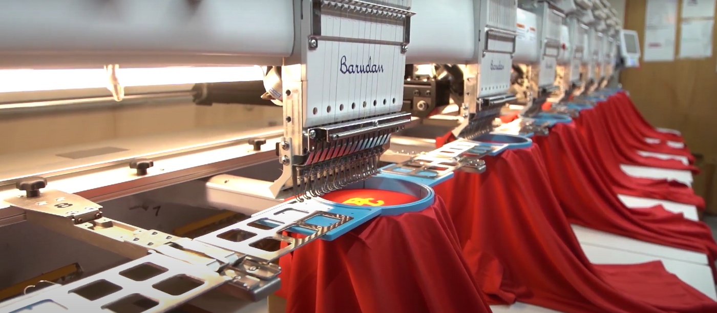 OUR IN HOUSE EMBROIDERY PROVIDES QUICK TURN AROUND WITH NO MINIMUMS REQUIRED. OUR EMBROIDERY TEAM PROVIDES EMBROIDERY, TACKLE -TWILL, AND APPLIQUE